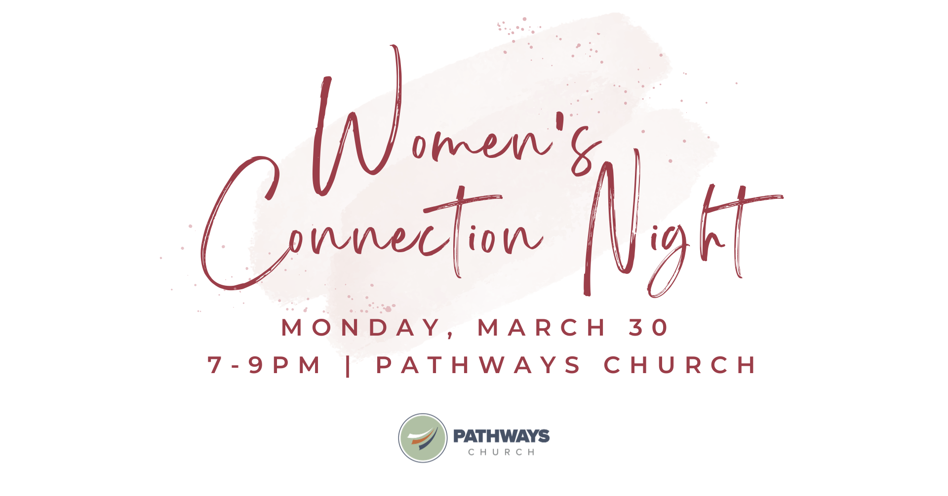 Come to our next Women’s Connection Night on Monday, March 30, from 7-9PM, here at Pathways Church.